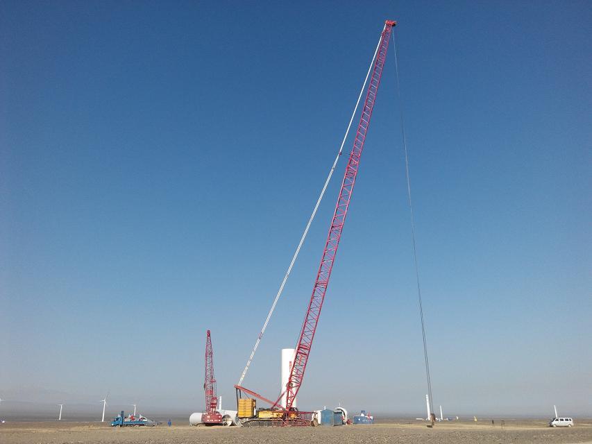 此臺(tái)履帶吊服務(wù)于戈壁灘一大型風(fēng)電項(xiàng)目,由于此臺(tái)履帶吊噸位大,現(xiàn)場(chǎng)環(huán)境惡劣,所吊裝的設(shè)備價(jià)值昂貴,現(xiàn)場(chǎng)對(duì)安全高度的重視,故該能源建設(shè)公司為此臺(tái)履帶吊配備我公司TLX55A型履帶吊力矩限制器,來(lái)為此項(xiàng)目的安全保駕護(hù)航。